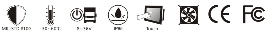 本机采用7英寸高温制程工业电阻式触摸屏,可内置802.11a/b/g/n/ac, Bluetooth V4.0, 全网通LTE / 3.5G,GPS / GNSS / Beidou,CAN2.0B等模块,8~36V宽压直流输入带Power ignition延时开关机功能的电源管理,使它适应仓储叉车,物流车队,码头集卡等多种车队管理的运用场景,STD-MIL-810G抗振动冲击和IP65防尘防水标准,在最严苛的环境下依然能够操作自如。